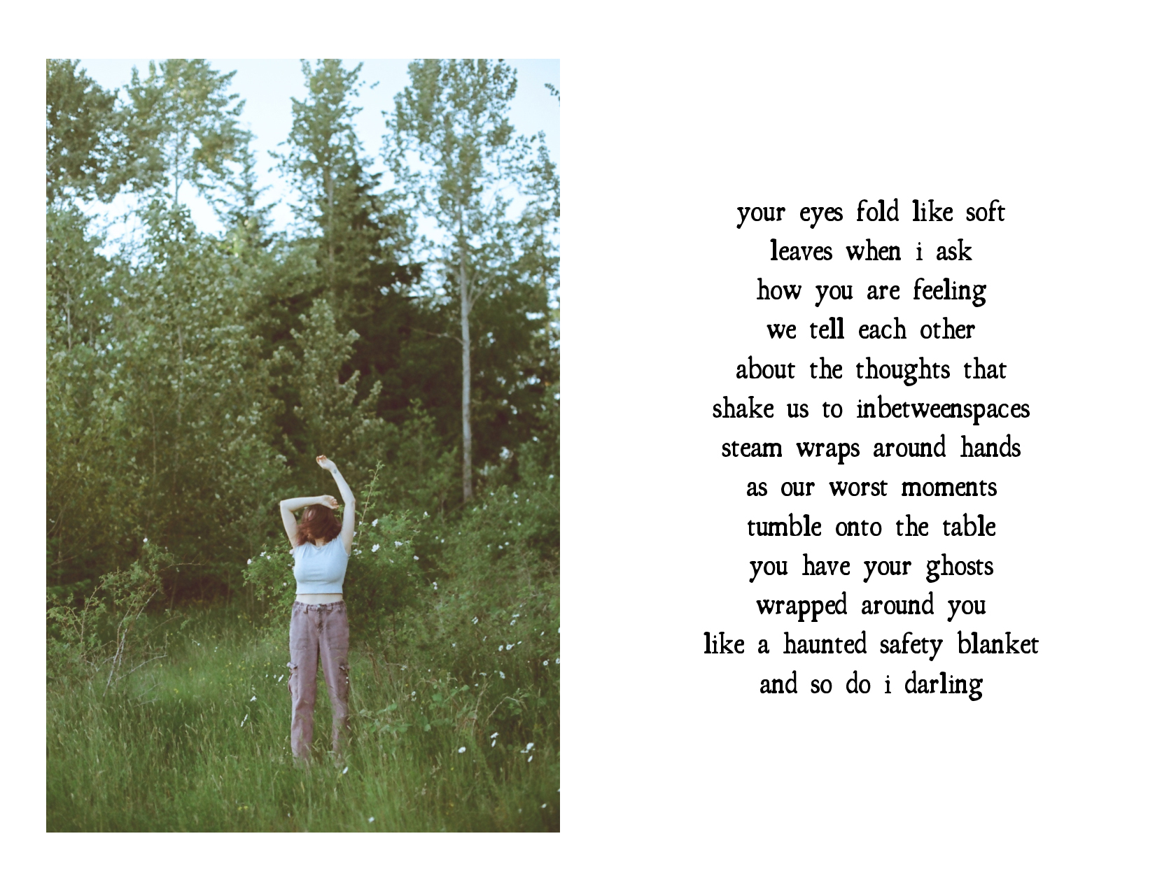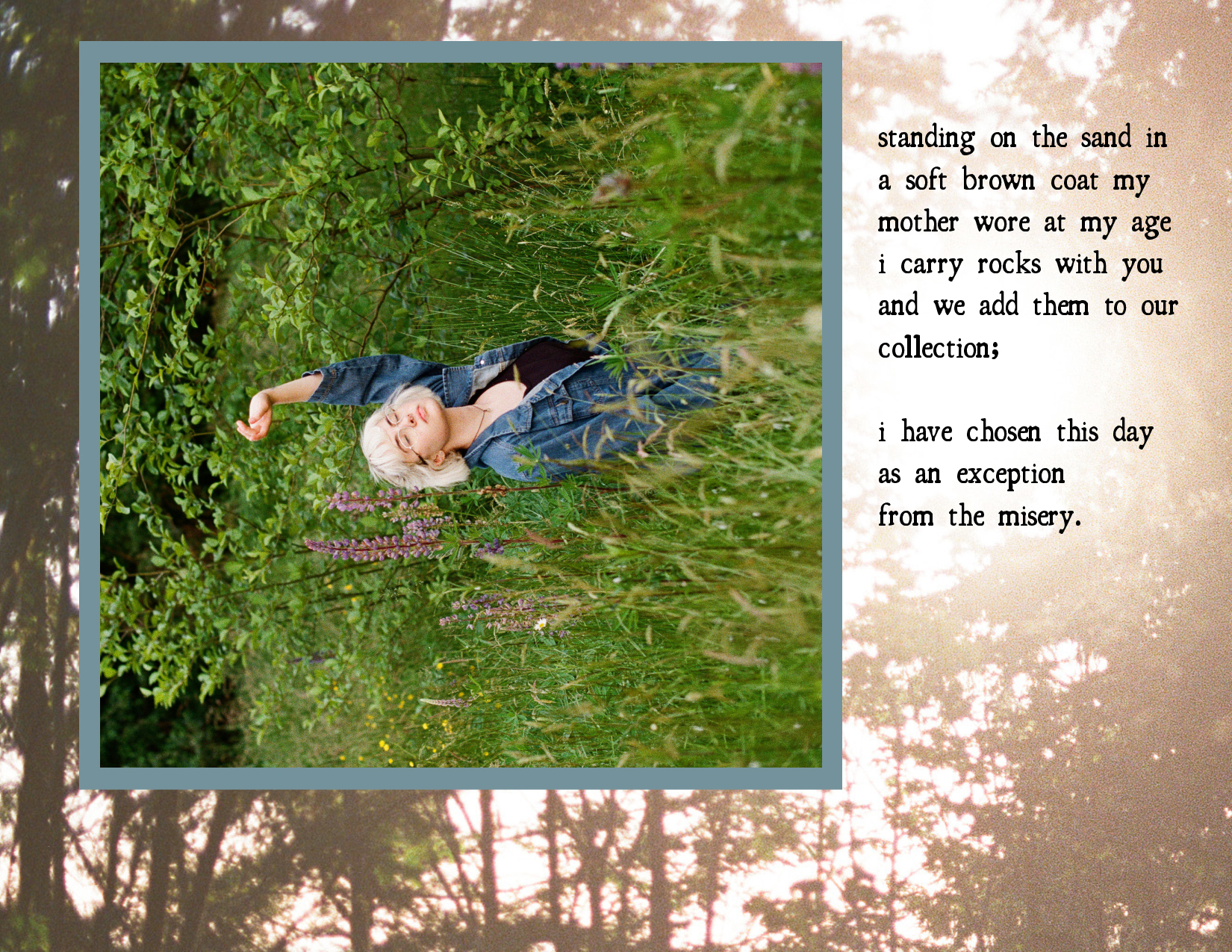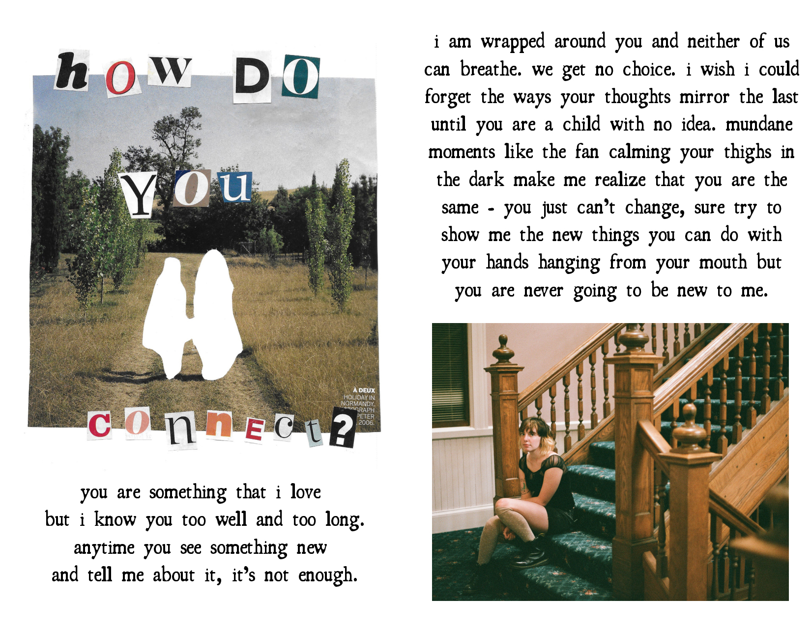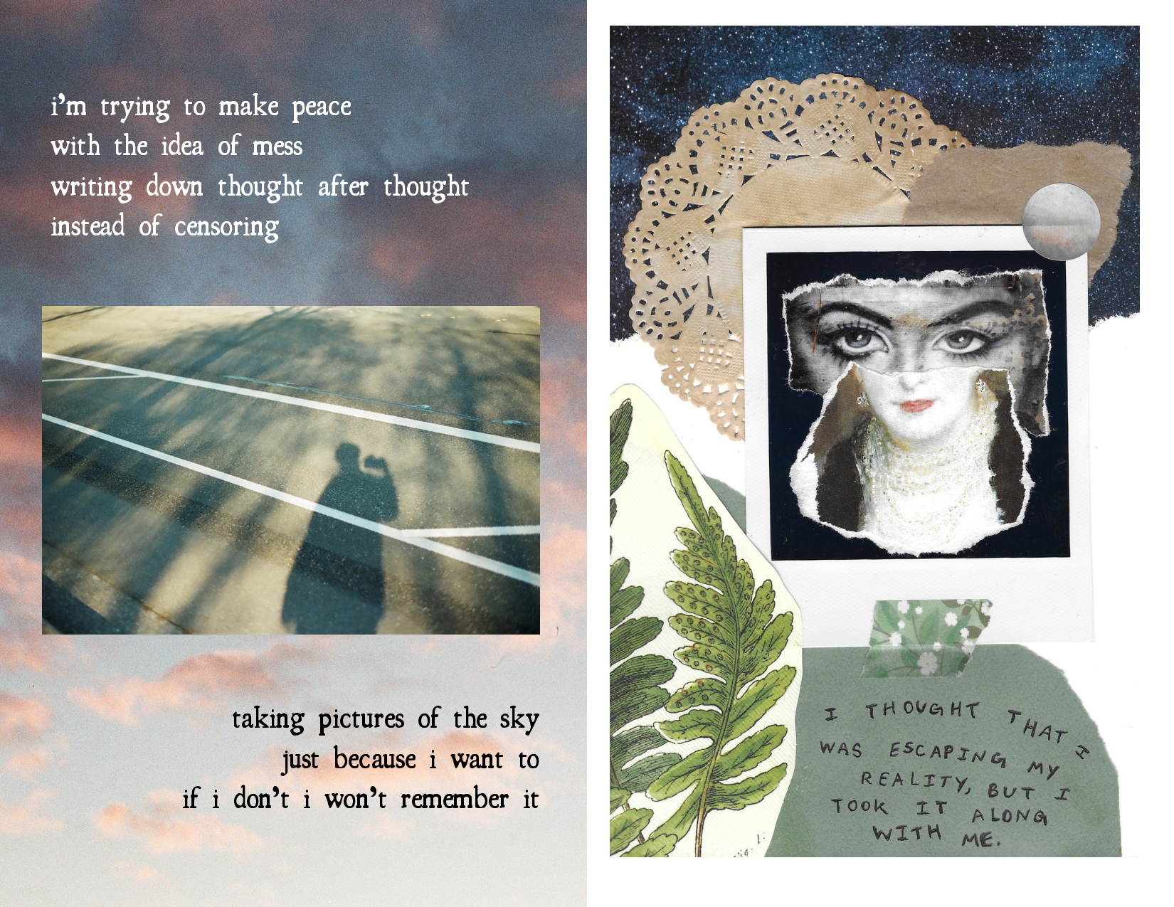 wishful thinking is an ongoing mini zine series by jada bee and hazel rain. this project began as a spontaneous decision to create something new out of archived work, giving new meaning to past photographs, collages, and writing. the artists connect their work together based on unifying themes, such as identity, searching for meaning, and change. the series is a way to make art imperfectly, and it feels important that they are accessible. to support this purpose, jada and hazel will always give these zines away for free.